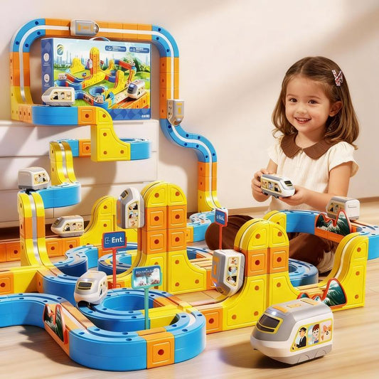 167PCS Electric Train Set Flexible Race Track Rail Toys, Building Toy Train Track Gravity-Defying 3D Embedded Layouts & Motorized Car, STEM Learning Gift